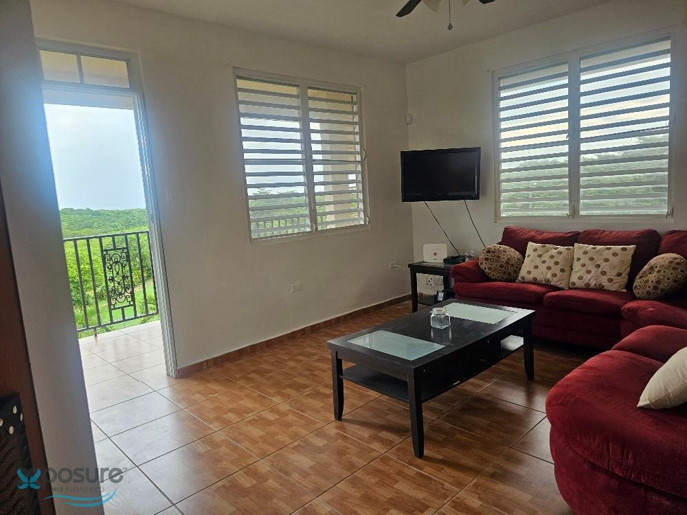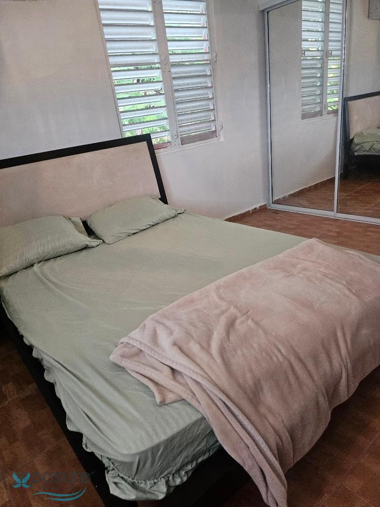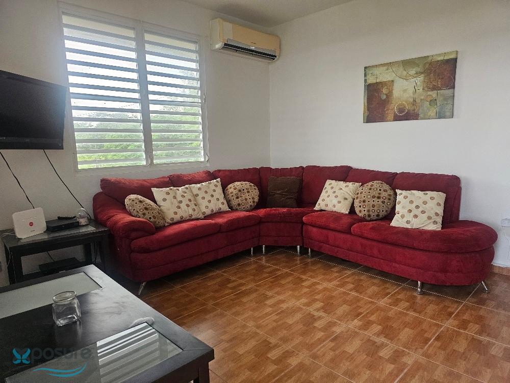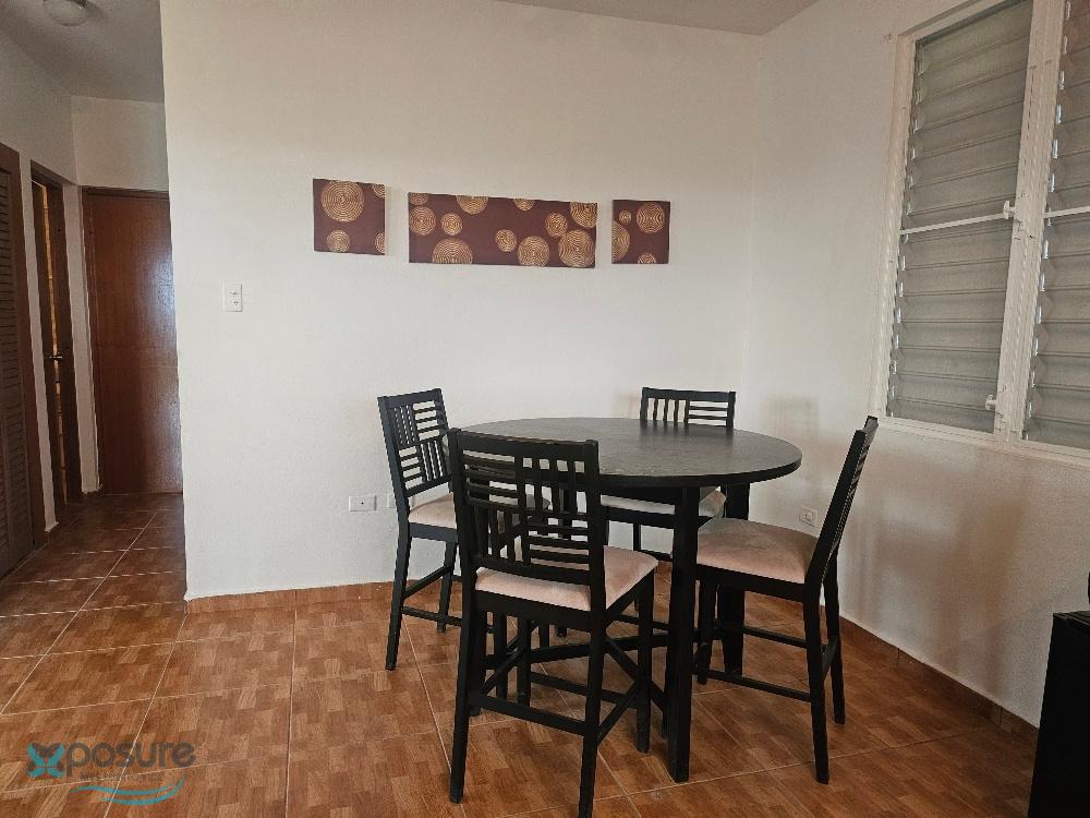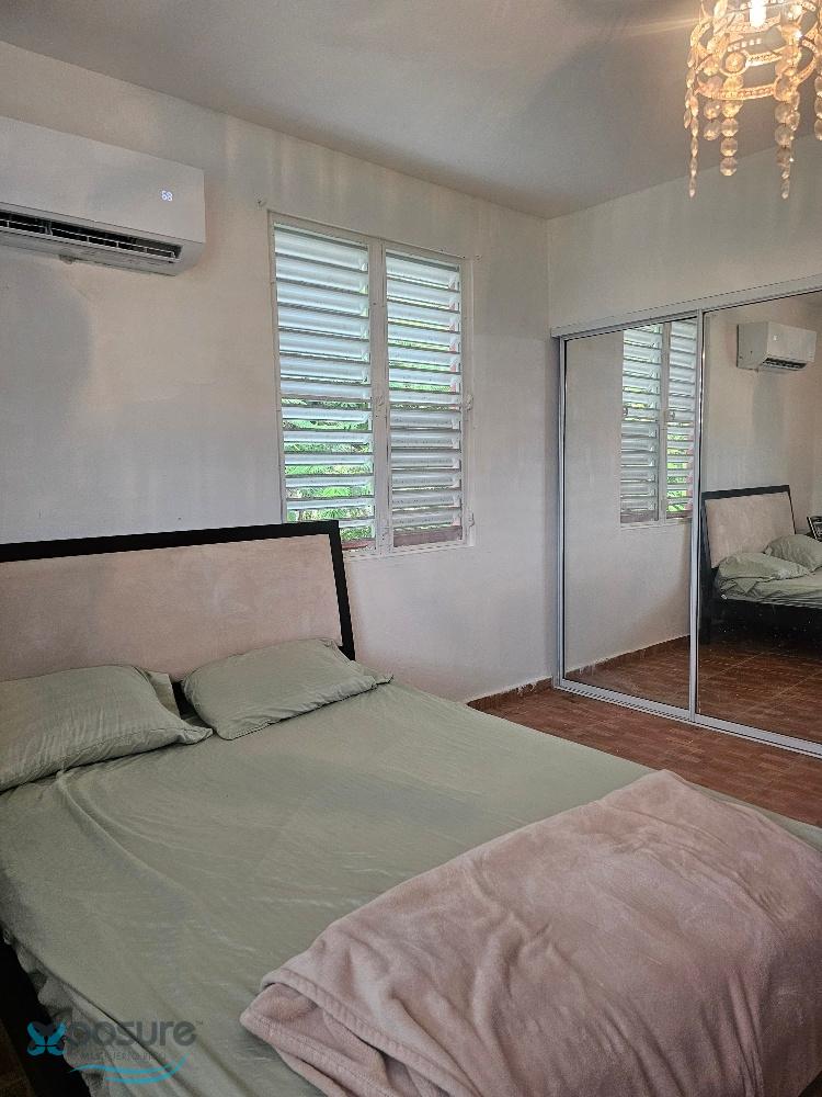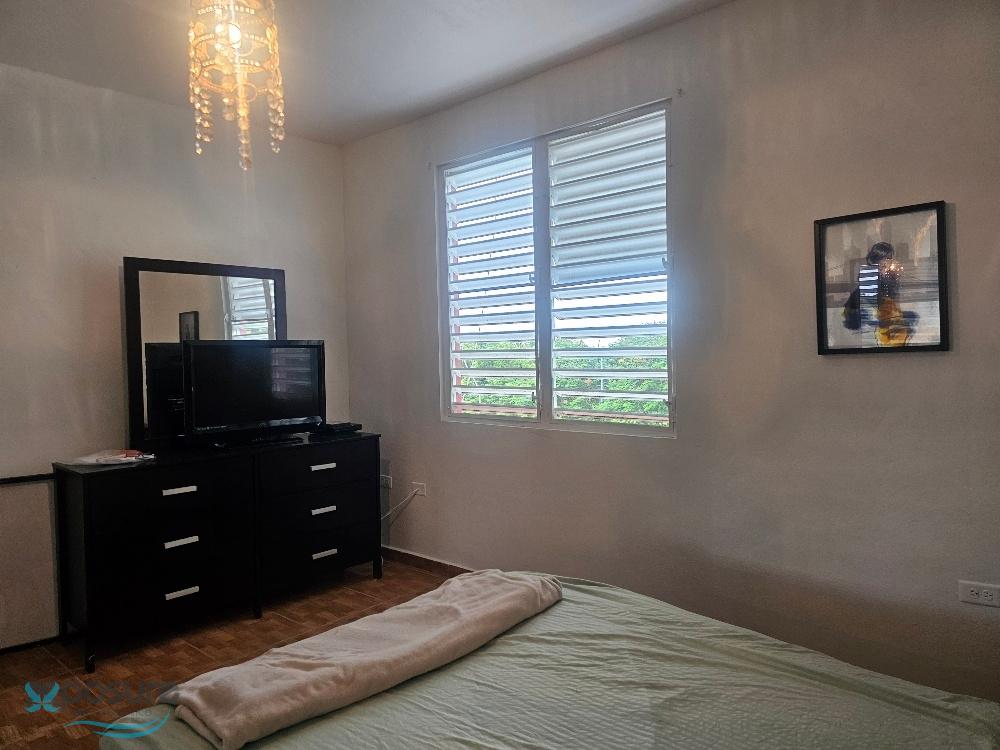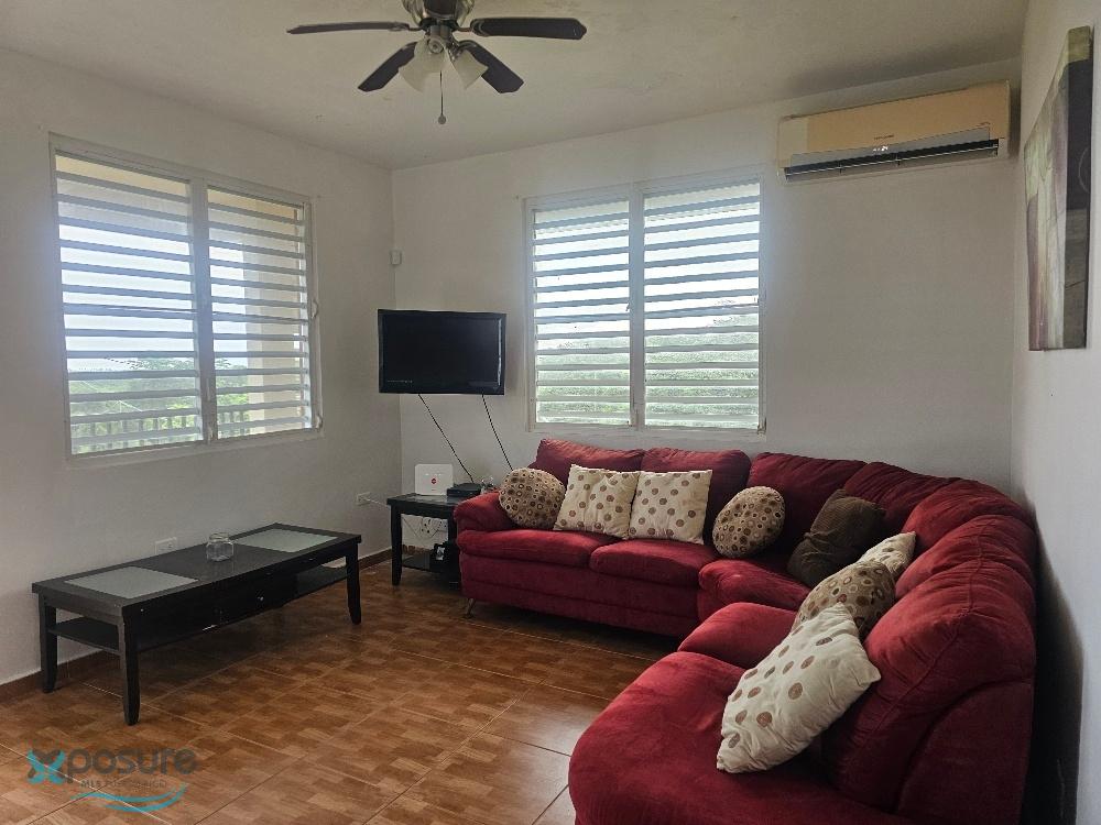 Second-floor apartment with 2 bedrooms and 2 bathrooms, living room, dining room, kitchen, laundry room, and balcony. Furnished, with appliances including stove and microwave, and air conditioning in both bedrooms and the living/dining/kitchen area. Located in Bo Guerrero on a spacious lot with pleasant views and uncovered parking. Located at 18.471108, -67.081850, close to industries, shops, schools, beaches, a university, restaurants, and other area attractions..