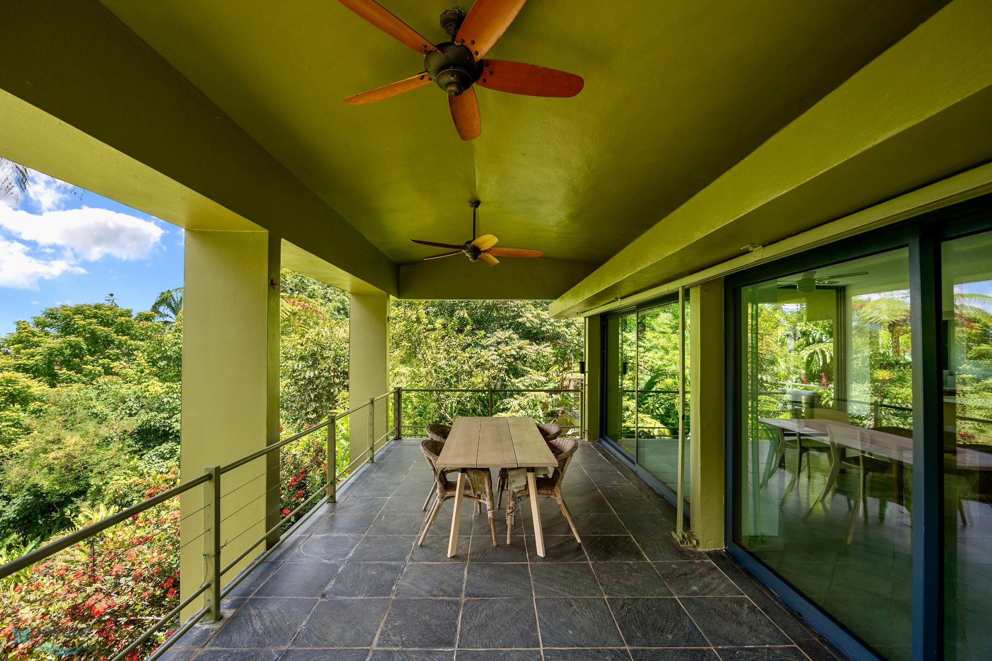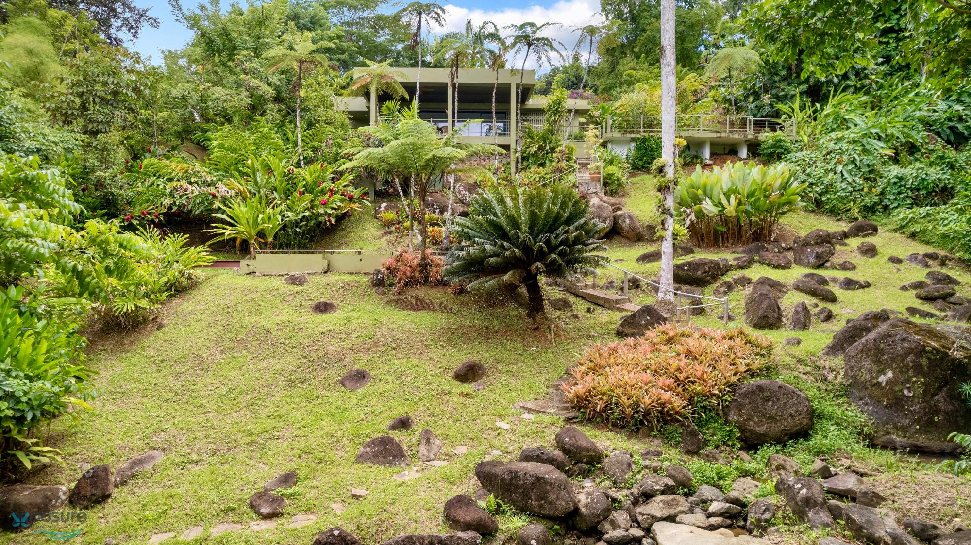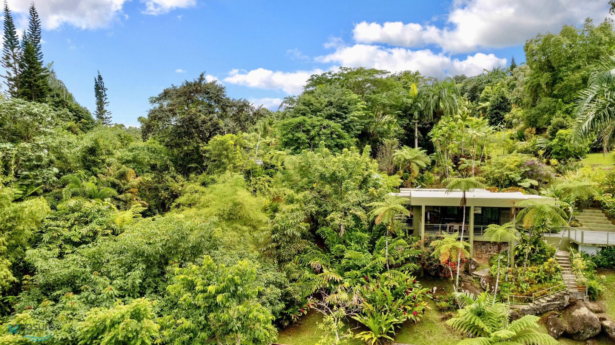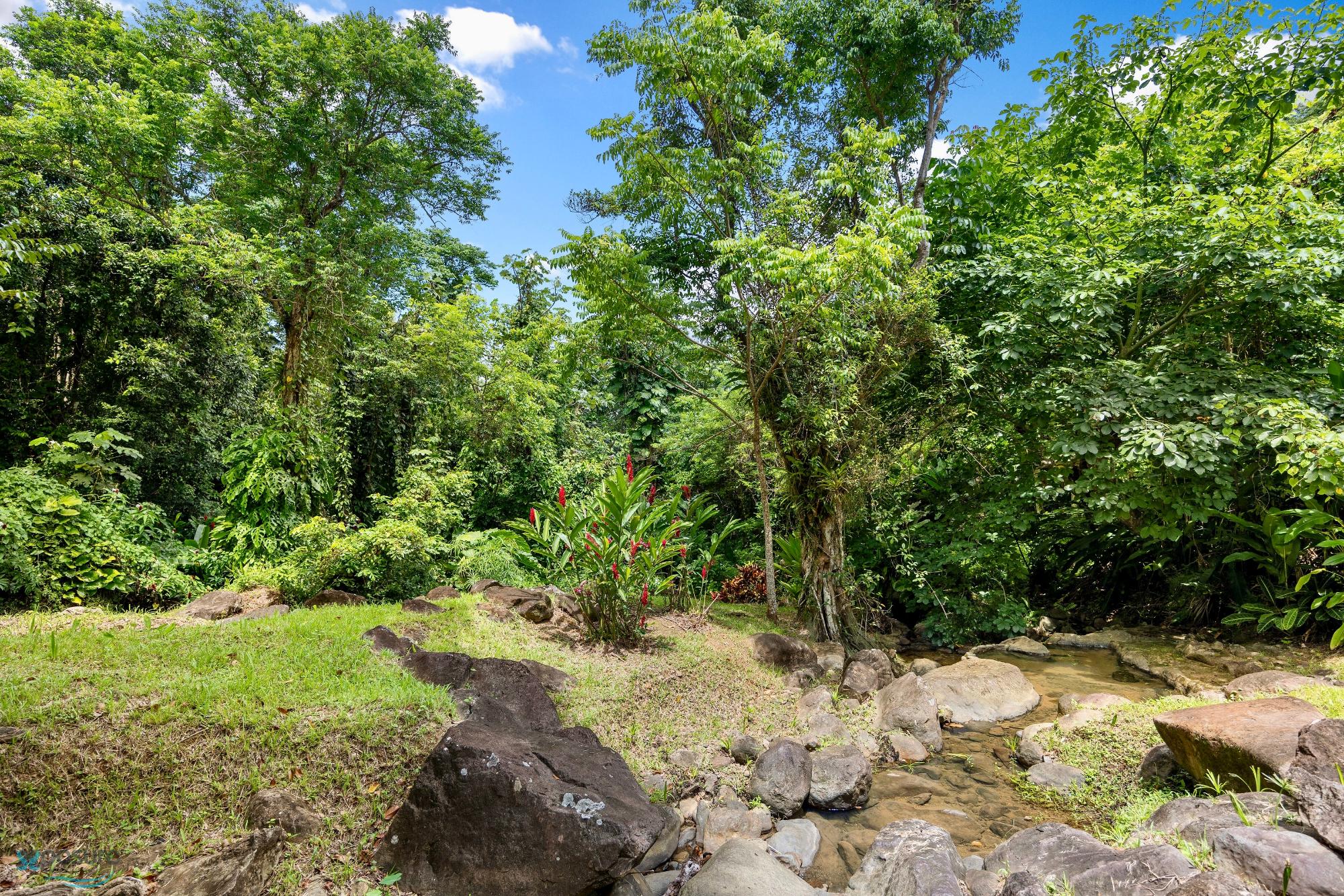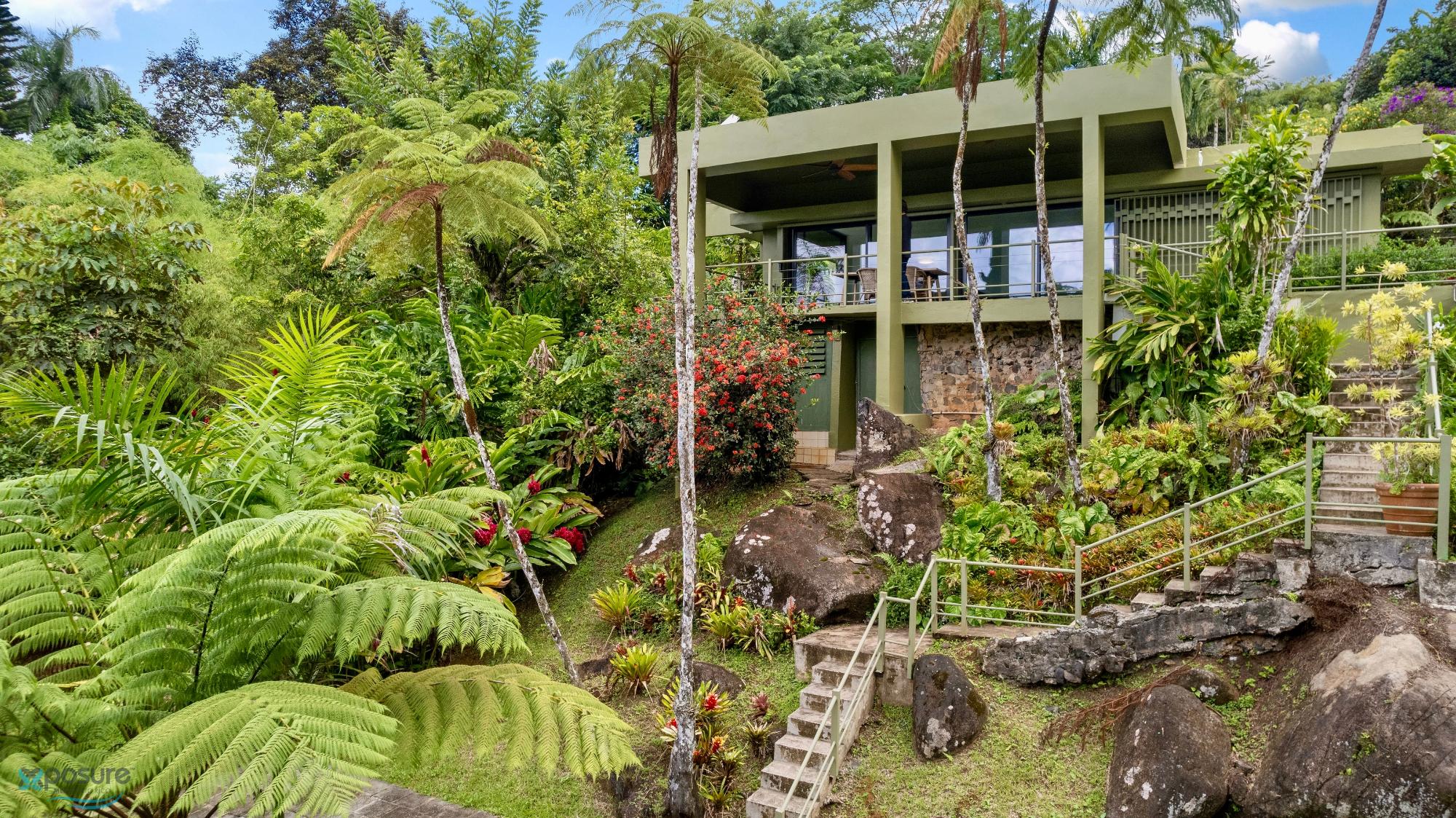 Embrace modern tropical living in this stunning 3-bedroom, 3-bath residence located in the lush hills of Mameyes II, Río Grande. Designed in a contemporary tropical style, this home features approximately 2,350 square feet of interior space and 1,500 square feet of terraces and balconies, offering seamless integration between indoor and outdoor living. Expansive glass panels and open-concept spaces invite natural light and panoramic views of the surrounding rainforest, while multiple terraces provide ideal settings for entertaining or peaceful relaxation. Set on over 3 acres of vibrant greenery, this tranquil retreat offers privacy and serenity just minutes from El Yunque National Forest, Río Grande’s pristine beaches, and local dining. Perfect as a primary residence, vacation home, or income-generating property, this home beautifully combines modern comfort with Puerto Rico’s natural beauty..