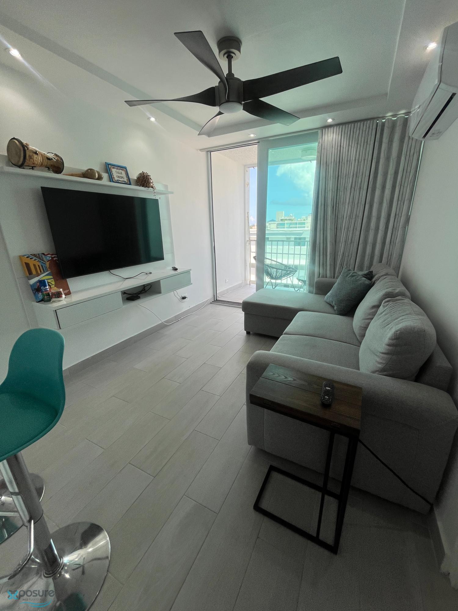 Apartment in the Condominium New San Juan in Isla Verde fully remodel. The apartment was remodel one year ago and all the furniture is included on the property. Is one bedroom, 1 bathroom, balcony with a view to the airport, El Yunque and the ocean. Walking distance to the best beach in the area. Close to restaurant's, hotels, supermarket and airport. Pool, GYM and 24 hour security..