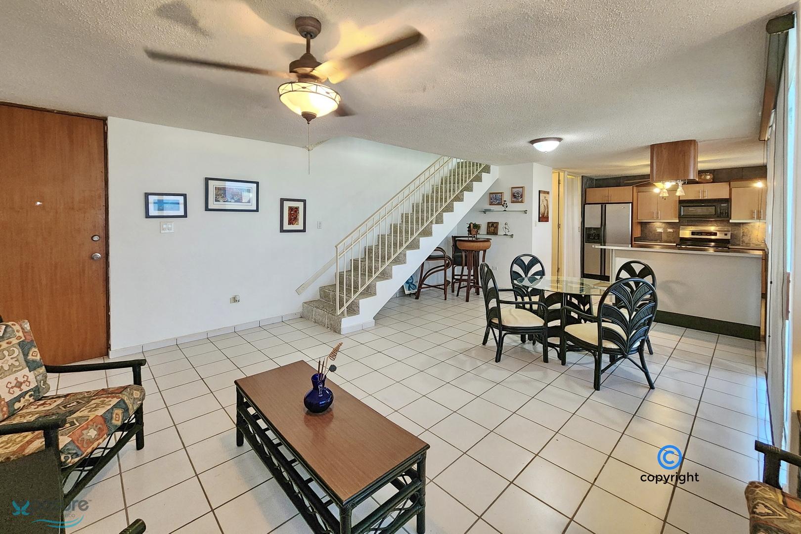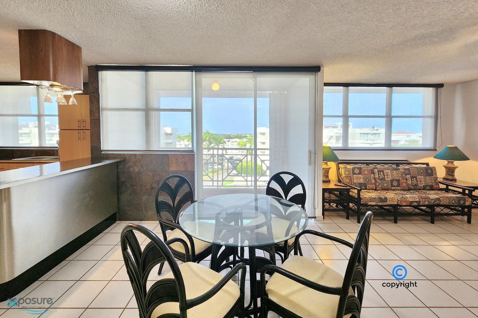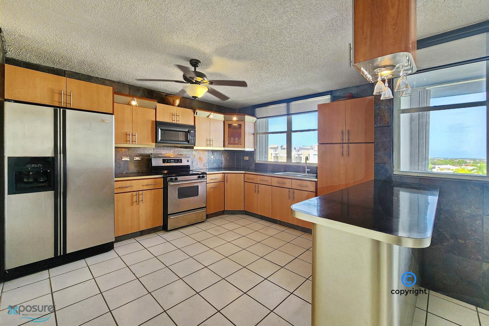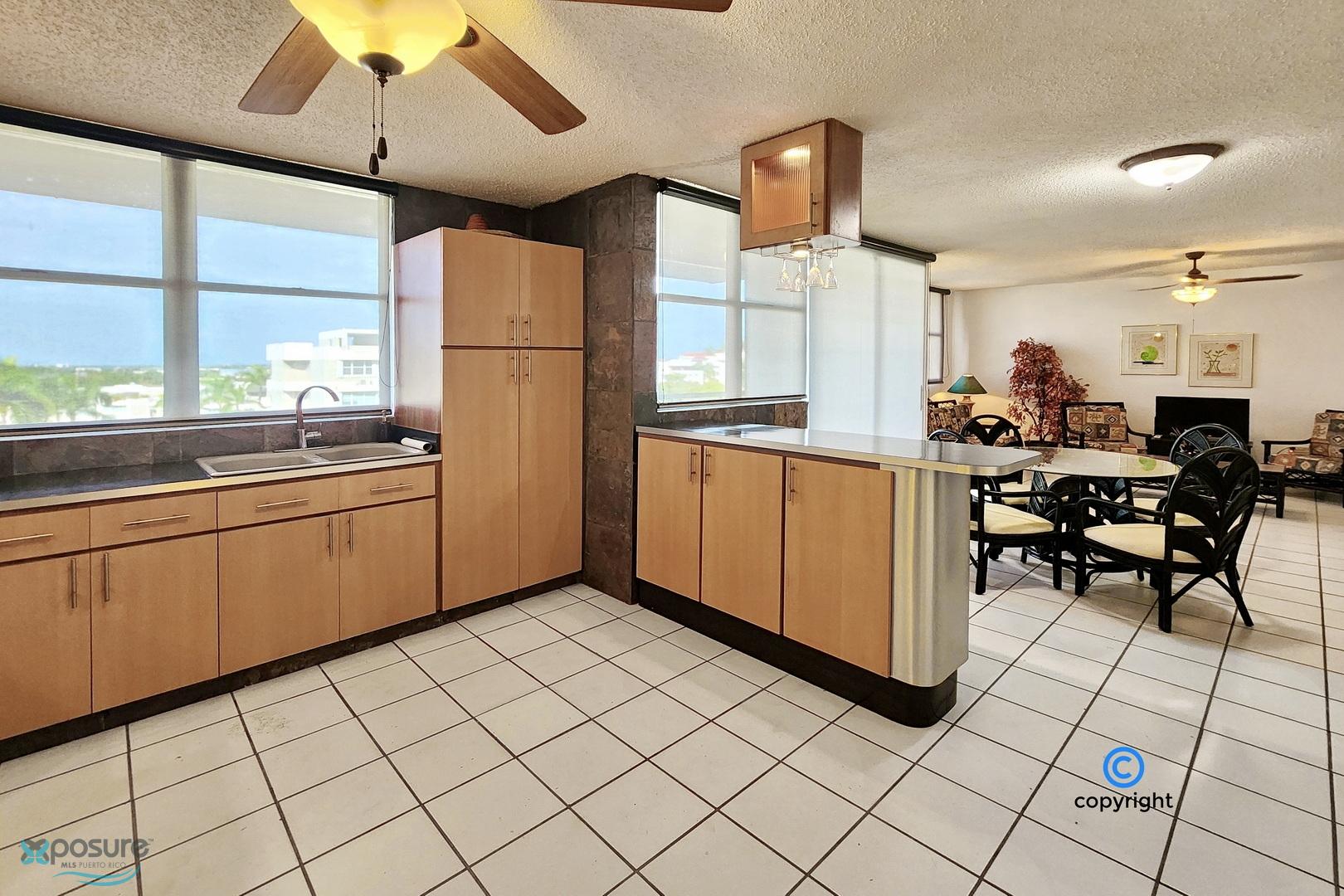 Experience breathtaking ocean, city, airport, and lagoon views from this exceptional penthouse located in the gated Escorial community. This walk-up unit (no elevator) offers approximately 1,460 interior sq. ft. featuring 3 bedrooms and 3 bathrooms, an open concept living and dining area, and a modern kitchen equipped with stainless steel appliances. The property includes 3 mini-split A/C units, 5 ceiling fans, and a private water cistern for added comfort and peace of mind. Enjoy outdoor living with a spacious balcony and an impressive ~850 sq. ft. rooftop terrace, partially covered—perfect for entertaining or relaxing while taking in the views. Includes two assigned tandem parking spaces. Residents enjoy 24-hour security and resort-style amenities such as a community pool, tennis and basketball courts, soccer park, jogging trails, children’s playground, and a beautifully landscaped park with mature trees. Ideally located in the heart of the growing Escorial Restaurant & Shops district, just minutes from Mall of San Juan, 10 minutes to SJU-Luis Muñoz Marín International Airport, and 15 minutes to Isla Verde beach strip, restaurants and hotels. Excellent school district with easy access to major highways and main roads. •HOA: $175/month •Property Tax: approx. $450/year (primary residence) •No short-term rentals allowed •Proof of Funds or bank loan pre-approval required..