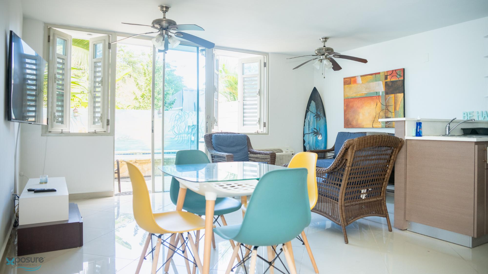 Prop ID: J-3722 Experience the ultimate coastal getaway at this stunning three-level vacation rental located in the exclusive Wave Coast community of Rincón, just steps from the beach. Perfect for weekend escapes or extended stays, this beautifully designed property offers comfort, privacy, and unforgettable ocean views. The first level welcomes you with a spacious open-concept layout featuring a fully equipped kitchen, cozy living area, half bath, laundry space, and direct access to your private swimming pool, ideal for relaxing or entertaining after a day at the beach. A private garage adds convenience for guests. On the second level, enjoy two comfortable bedrooms, including a master suite with a walk-in closet, en-suite bathroom, and private balcony. A second full bathroom serves the additional bedroom, providing ample space and comfort for families or groups. The third level is a true highlight, offering a versatile sitting area with breathtaking ocean views and a full bathroom—perfect as a relaxation lounge, workspace, or additional guest area. With modern amenities and a prime location near world-class surf spots, dining, and entertainment, this home is ideal for travelers seeking a luxurious yet laid-back Rincón experience. Whether you’re here to unwind, surf, or explore the west coast of Puerto Rico, this Wave Coast retreat is your perfect home away from home. Utilities are not included. Coordinates: 18.3259441,-67.249527..