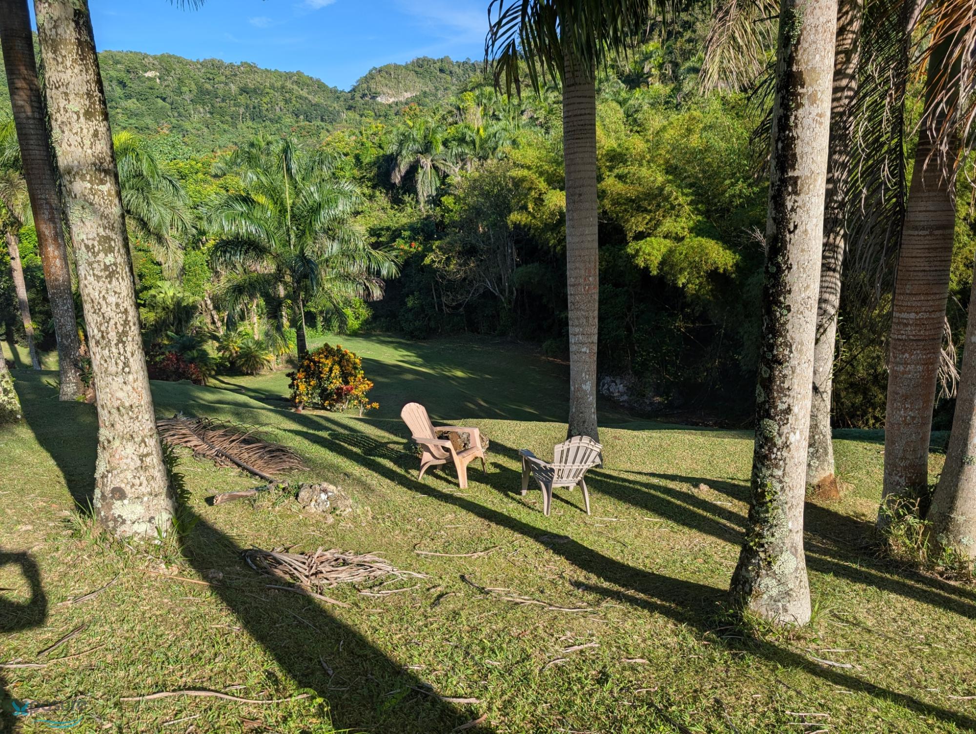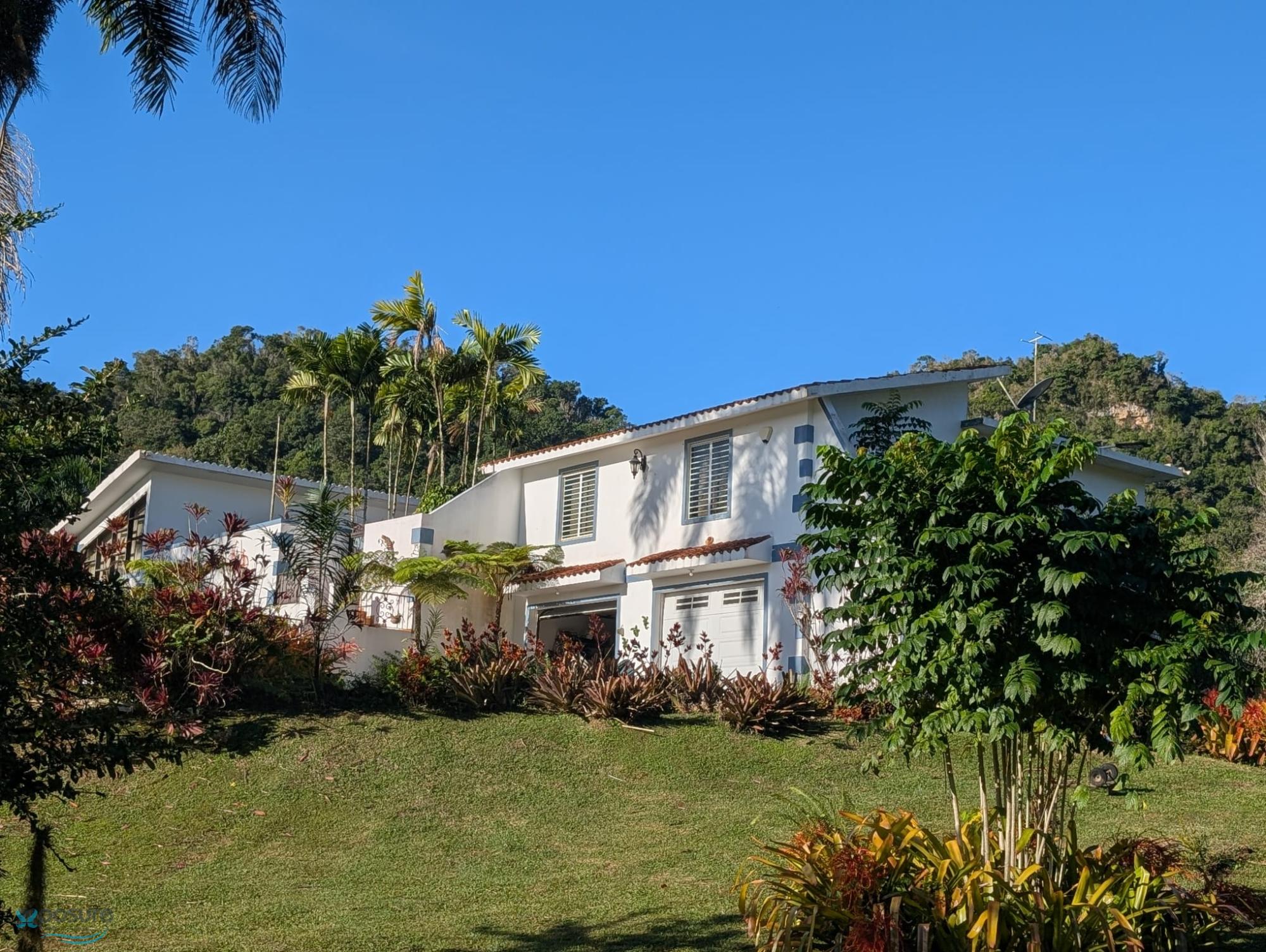 A beautiful and spacious residence built on six and a half acres of land. The entire property is manicured and landscaped, with no wasted land. The property boasts an exquisite variety of ornamental plants, including approximately eighty (80) royal palms, other palm varieties, and fruit trees. Adding to its appeal are four (4) natural springs of potable water, and a clear stream flows through the property. The land is fertile and suitable for cultivation. The Guajataca River runs parallel to the property, enhancing its charm and lending a special touch to this paradise in the town of Isabela. On the property, we found two residences, each with its own unique charm. The main residence is built of concrete. It features three bedrooms with spacious closets, ceiling fans, and ceilings ranging from 9 to 12 feet high. The upstairs bathroom is very spacious and includes a smart shower enclosure with multiple functions. From the front entrance, you access an interior garden enclosed by walls, which leads to a foyer located in the center of the house. On the other side of the foyer, you step into another interior garden, a space where you can unleash your imagination for your personal project. The kitchen and dining area is very spacious. There you'll find cabinets and a pantry built from mahogany, as well as a central island. The refrigerator and stove are included. The living room is so spacious that it requires two sets of furniture (included) to fill the room. From the living room, you have access to the first garden at the entrance and an additional exit leading to the third interior garden area, featuring a rustic gazebo that provides a wonderful space for rest and relaxation. The interior staircase leads down to the garage area with electric doors. There you will also find an office space and a second, very spacious bathroom with storage. The second residence is built of treated wood (ideal for short-term rentals). Near this residence, you'll find a vegetable garden with a variety of vegetables. At the entrance, there's a small pond with spring water and fish, surrounded by a beautiful array of ornamental plants. The living room is open-plan, and from there, two steps lead up to the dining and kitchen area. Two more steps bring you to a large bedroom with two queen beds and a full bathroom. From the riverbank on the property, you can take excursions to the river's mouth at El Túnel Beach, located between Isabela and Quebradillas. Also nearby, you can hike to the Natural Resources Office in the heart of the Guajataca Forest. Shore fishing, boating, and kayaking are just two minutes from this enchanting location. This place is a delight to live in, and it's also a great investment opportunity. The possibilities here are vast. There are not many places on our island of Puerto Rico with the characteristics of this place that captivates everyone who visits it..