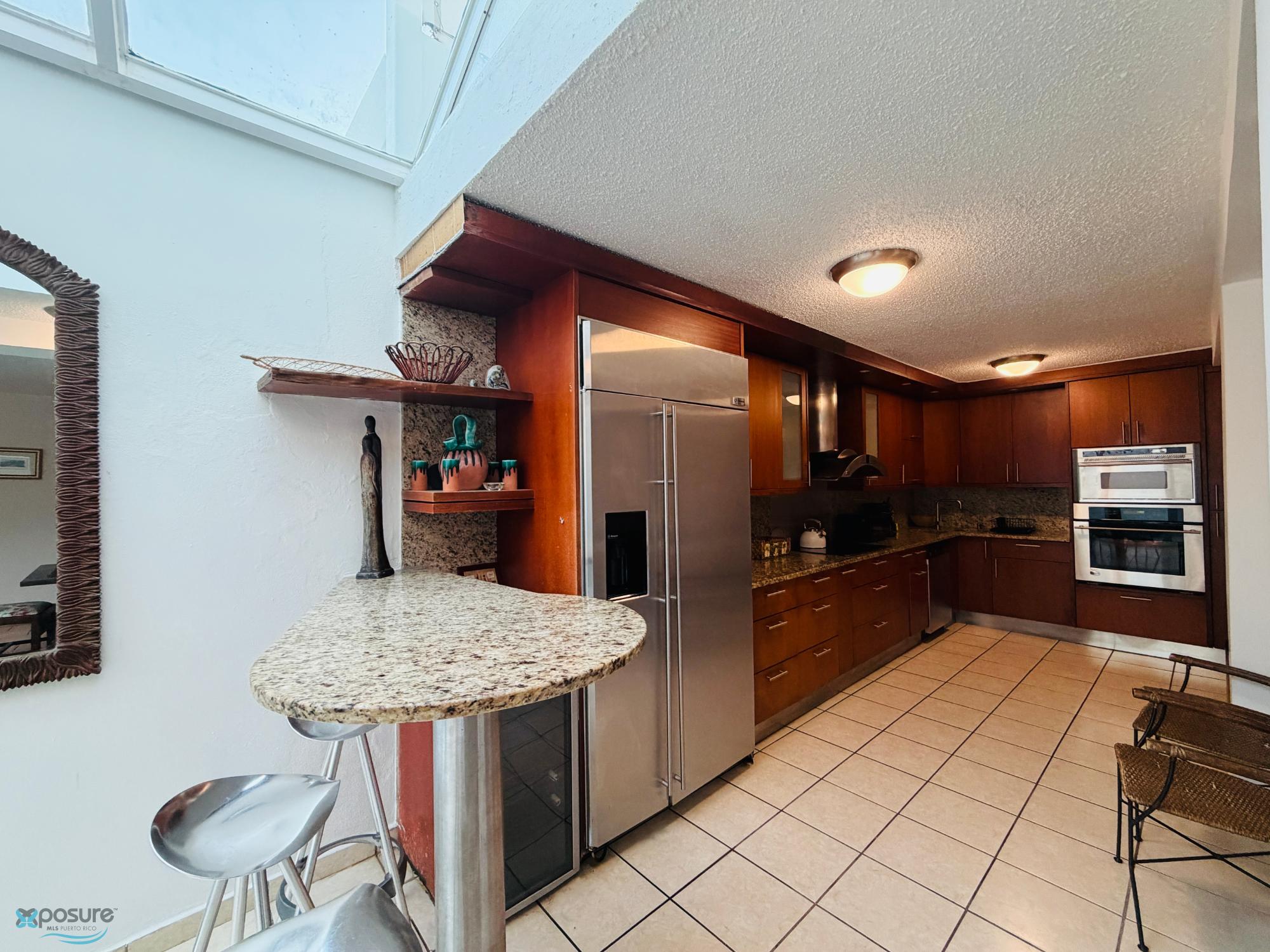 Live in an exclusive, private, and oceanfront area between Ocean Park and Isla Verde. This three-level TownHouse model home boasts 2,280 sq ft of living space. The first level features a remodeled kitchen, breakfast nook, stained glass window, interior patio, living room, dining room, half bath, and a double carport with storage. The second level includes a spacious master suite with a master bathroom, walk-in closet, and terrace. Additionally, there is a full bathroom and laundry room in the hallway, plus three more bedrooms. The third level offers a family room and a large semi-covered terrace with a half bath and an elevated lookout point with ocean and city views. Air conditioning is installed throughout, and all appliances are included. The complex has only five residences, with double access control on a cul-de-sac. Just 10 minutes from Ocean Park Beach. Invest wisely and maximize your investment. For a video or private showing of the property, call or text 939-285-5050..