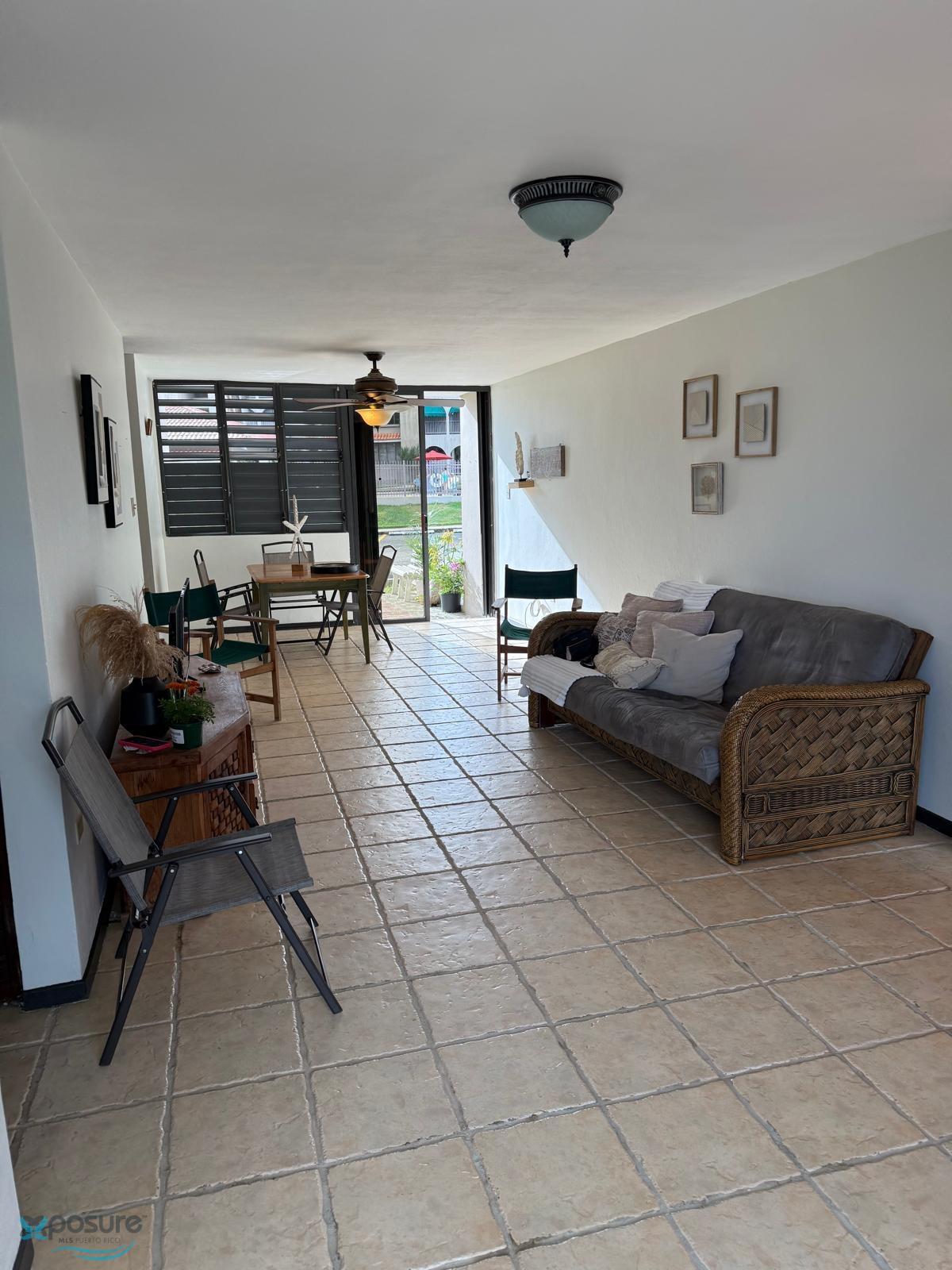 Cala de Húcares COndominium. Gated Community. "Garden" apartment located on the 1st floor with living-dining, kitchen, balcony, patio, 3 bedrooms, 2 bathrooms, laundry closet, and 2 parking spaces. Appliances and equipment are included (in their working condition at the time of closing). Recreational facilities: direct beach access, gazebo, swimming pool, tennis court, basketball court, and children's playground. Amenities: minutes from PR-30 and PR-53 Expressways, Roosevelt Roads, El Yunque Río Sabana Recreation Area, and Palmas del Mar, among others. Approx 25 miles to the Luis Muñoz Marín International Airport and 29 miles to San Juan. 24/7 security. HOA fee is $200/month. Airbnb is permitted. Areas, age, and distances are approximate..