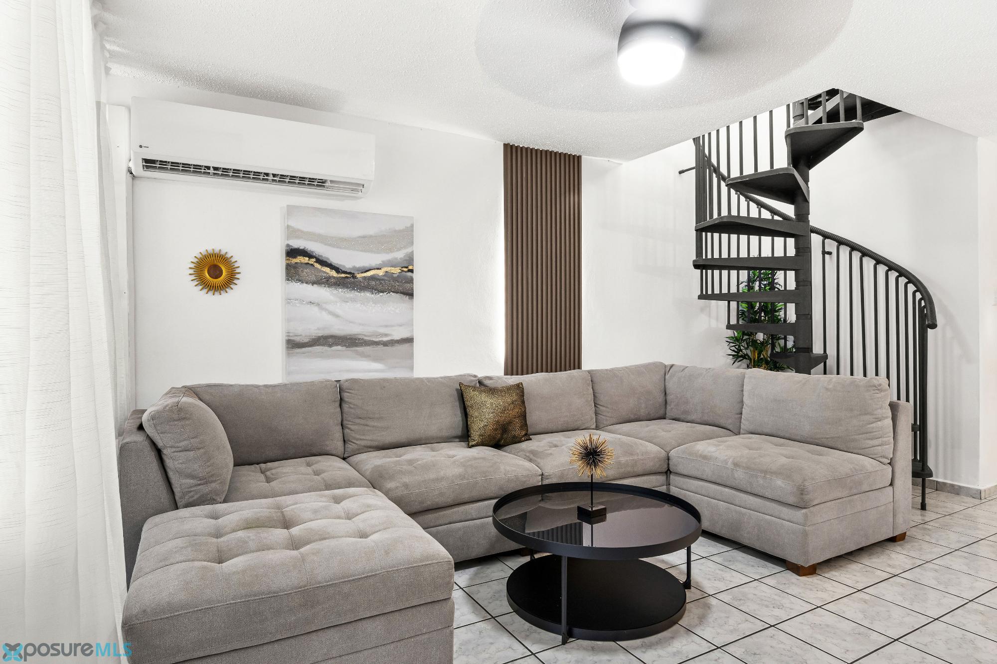 Penthouse for Sale – Les Jardin's, San Juan 3 bedrooms convertible to 4 (includes den) | 3 full bathrooms | Semi-furnished A unique opportunity to acquire a spacious penthouse in the Les Jardin's complex, ideal for those seeking space, comfort, and a strategic location in the metropolitan area. The property features an excellent layout on two levels and is move-in ready. The apartment includes: • 5 air conditioners (in the 3 bedrooms on the first level, living room, and second floor) • Furniture • Dining set • Refrigerator • Stove • Microwave • Washer and dryer • Bedroom set (bed with mattress, 2 nightstands, and dresser) Complex amenities: • Swimming pool • Basketball court • Gazebo • Children's playground • Access control Located in San Juan, bordering Trujillo Alto, with easy access to shopping centers, supermarkets, pharmacies, schools, and main roads. Contact me for more information or to schedule a visit..